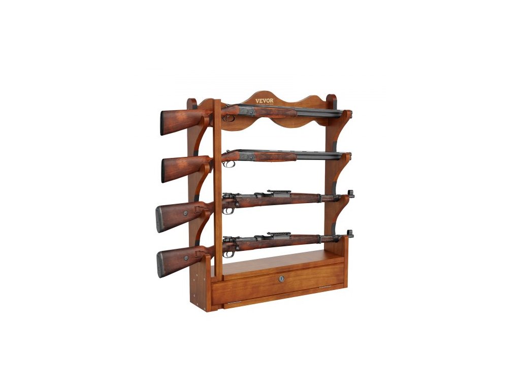 Stojan na zbraně VEVOR, dřevěný stojan na zbraně k upevnění na zeď, stojan na zbraně pro 4 pušky, brokovnice, odolný nástěnný stojan na zbraně o hmotnosti 60 kg s měkkým polstrovánímKonstrukce z masivního dřeva
