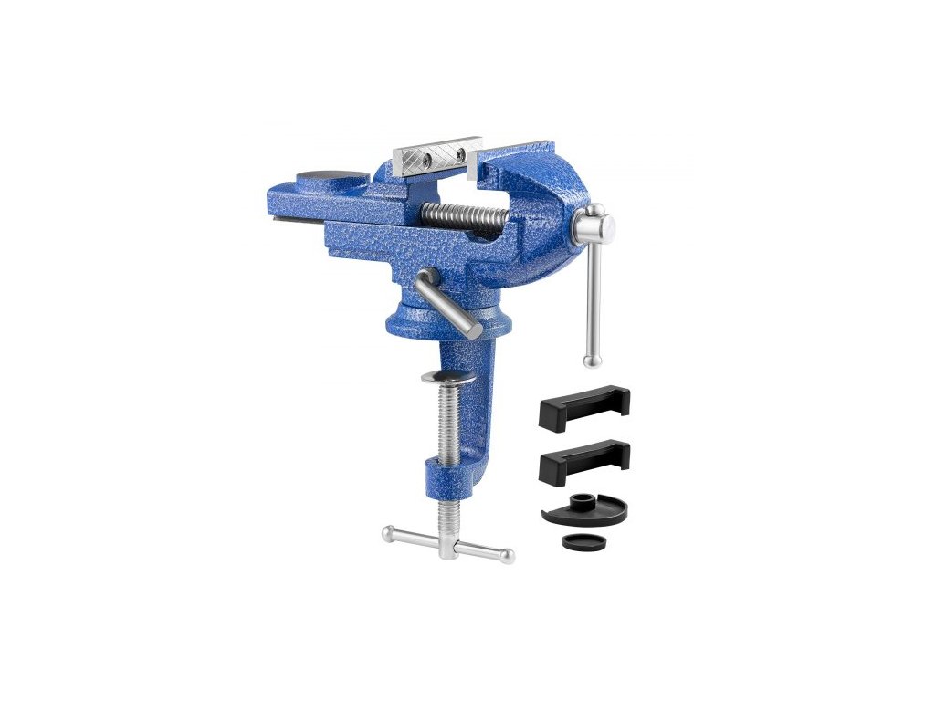 Stolní svěrák VEVOR, 3 palce, přenosný pracovní svěrák s otočnou základnou o 360°, rychloupínací otočná svěrka, zvýšená základna, litinová konstrukce, pro obrábění dřeva, obrábění kovů, vrtání a řezáníStolní svěrák