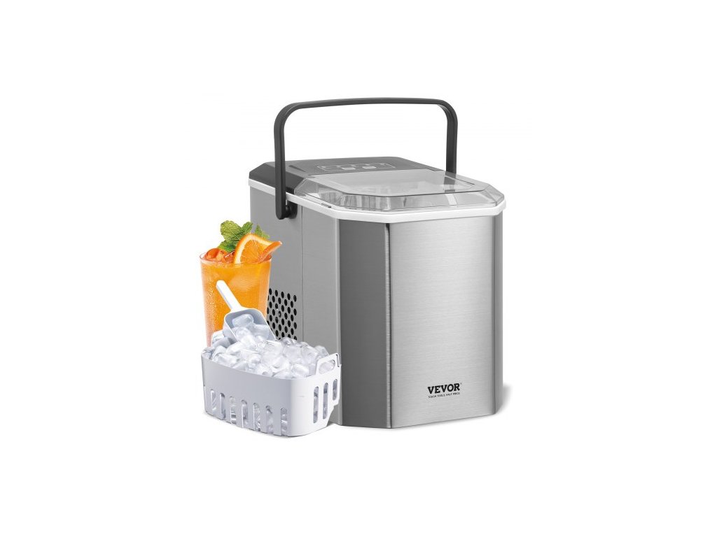 Stolní výrobník ledu VEVOR, 9 kostek připravených za 6 minut, 12 kg za 24 hodin, samočisticí přenosný výrobník ledu s naběračkou na led a košem, výrobník ledu se 2 velikostmi kuliček ledu pro domácí kuchyň, kancelář, bar, pártyVýrobník ledu na pracovní desku