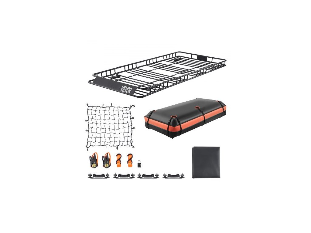 Střešní nosič VEVOR, 84 x 39 x 4,1 palce, univerzální střešní nosič s taškou 7,9 x 3,9 x 10,2 palce, síť, ráčnové popruhy, maximální nosnost 250 liber, střešní nosič zavazadel, pro SUV a nákladní automobilyExtra úložný prostor