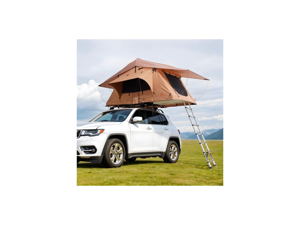 Střešní stan VEVOR s tvrdou skořepinou, střešní stan Naturnest s tvrdou skořepinou pro 2-3 osoby, skládací střešní stan s tvrdou skořepinou a teleskopickou matrací s žebříkem, PVC krycí vak, vodotěsný pro Jeep, SUV, dodávku, pickup.