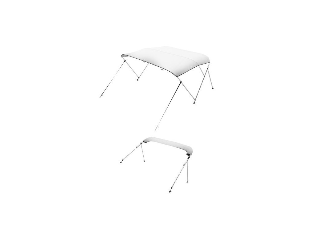 Stříška VEVOR Bimini se 3 příděmi na lodě, stříška z polyesteru 600D s rámem z hliníkové slitiny, vodotěsná a sluneční clona s úložným vakem, 2 podpěrné tyče, 4 popruhy, 183 cm D x 188 cm Š x 114 cm V, světle šedáDvě možnosti skládání