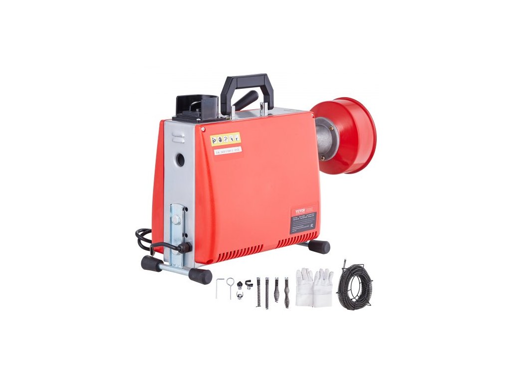 Stroj na čištění odpadů VEVOR 66FT x 5/8" 250W kanalizační hadí šnek s ručním podavačemRobustní motor