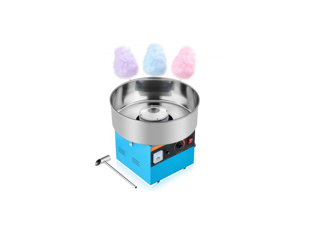 Stroj na cukrovou vatu VEVOR pro komerční použití, elektrický výrobník cukrové vaty s výkonem 1000 W, snadné použití s miskou z nerezové oceli o průměru 38 cm a odměrkou na cukr, vyrábí tvrdé cukrovinky pro domácí, dětské narozeniny, rodinné oslavy, modrýSnadná instalace a odpojení