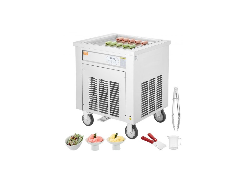 Stroj na smaženou zmrzlinu VEVOR, čtvercová forma na smaženou zmrzlinu o rozměrech 49,7 x 49,7 cm, nerezový komerční výrobník zmrzliny s kompresorem a 2 škrabkami, na výrobu zmrzliny, mraženého jogurtuStroj na smaženou zmrzlinu pro komerční účely