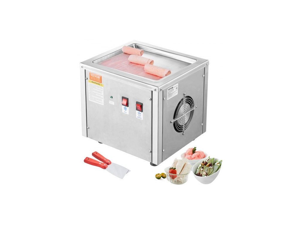 Stroj na smaženou zmrzlinu VEVOR, forma na smaženou zmrzlinu 28 cm x 24 cm, nerezový výrobník zmrzliny s kompresorem a 2 škrabkami, na výrobu zmrzliny, mraženého jogurtu, zmrzlinových rolekStroj na smaženou zmrzlinu pro domácnost
