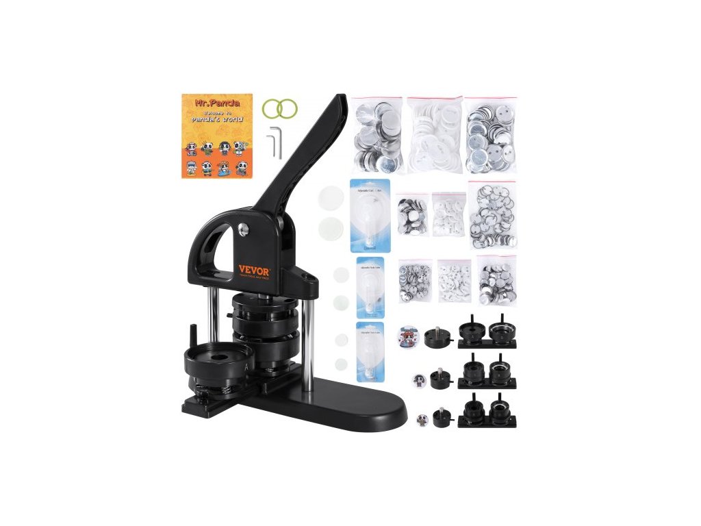 Stroj na výrobu knoflíků VEVOR, 1/1,25/2,28 palce (25/32/58 mm) 3v1, lis na odznaky bez instalace, sada na výrobu knoflíků s 300 díly, kruhový řezák, kouzelná kniha