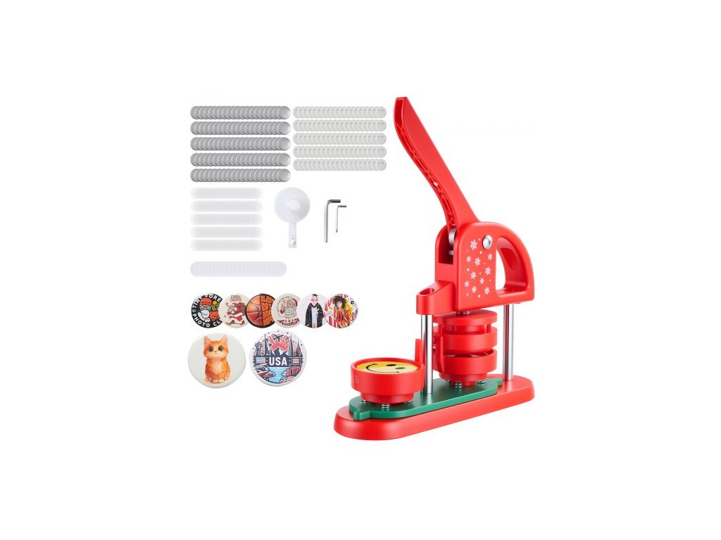 Stroj na výrobu knoflíků VEVOR, 58 mm, plastový výrobník odznaků se 100 díly na knoflíky, kruhový řezák a šestihranné klíče, zesílená ergonomická rukojeť, na výrobu odznaků, personalizovaných odznaků a klíčenek, červený