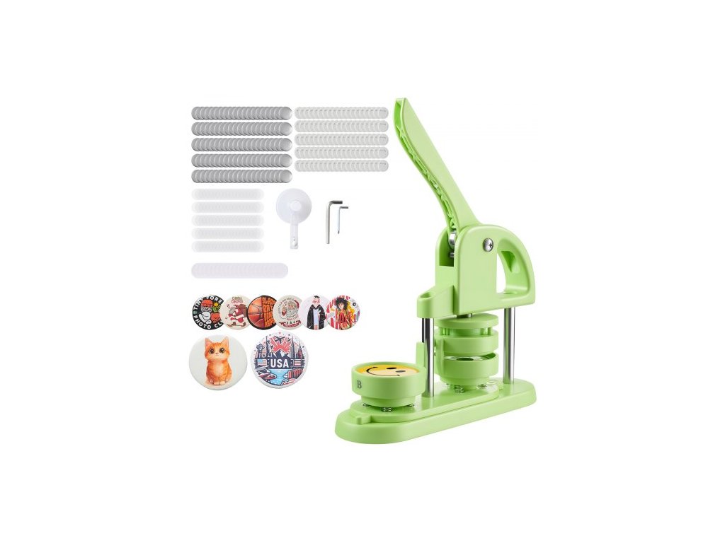 Stroj na výrobu knoflíků VEVOR, 58 mm, plastový výrobník odznaků se 100 díly na knoflíky, kruhový řezák a šestihranné klíče, zesílená ergonomická rukojeť, na výrobu odznaků, personalizovaných odznaků a klíčenek, zelenýErgonomická rukojeť