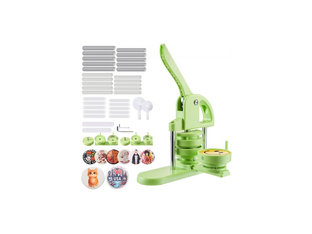 Stroj na výrobu knoflíků VEVOR, 58 mm / 75 mm 2 v 1, plastový výrobník odznaků s 200 díly knoflíků, kruhový vykrajovátek a kouzelná kniha, zesílená ergonomická rukojeť, pro výrobu odznaků, personalizované odznaky, zelená