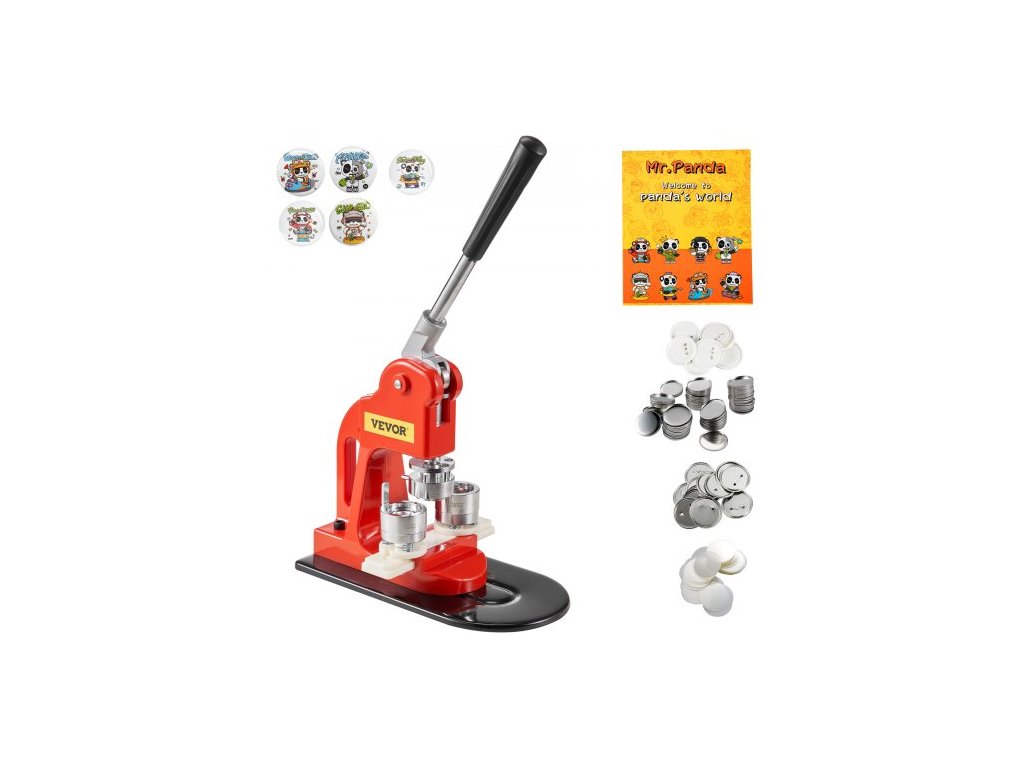 Stroj na výrobu knoflíků VEVOR, sada na děrování odznaků 25 mm (1 palec), dětské dárky pro kutily, výrobek odznaků, potřeby na výrobu knoflíků s 500 ks dílů pro knoflíky a kruhovým řezákem a kouzelnou knihouKouzelná kniha pana Pandy