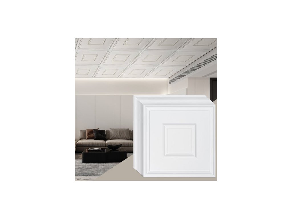 Stropní dlaždice VEVOR, balení 12 kusů, 24 x 24 palců, stropní dlaždice, prémiová PVC deska, snadná instalace/řezání, plastové lepené stropní dlaždice, stropní krytina pro domácí/kancelářskou dekoraci, bílé geometrické tvary