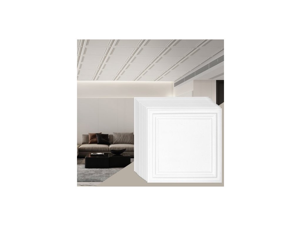 Stropní dlaždice VEVOR, balení 48 kusů, 20 x 20 palců, stropní dlaždice, prémiová polystyrenová deska, snadná instalace/řezání, plastové lepené stropní dlaždice, obklad sklepního stropu pro dekoraci domu/kanceláře