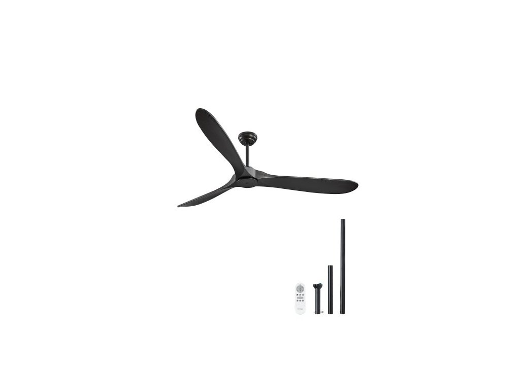 Stropní ventilátor VEVOR 72 palců bez světla, 6stupňové dálkové ovládání, 3 dřevěné lopatky, reverzibilní stejnosměrný motor, moderní nízkoprofilový zapuštěný venkovní ventilátor do ložnice, obývacího pokoje, na terasu, pro vnitřní i venkovní použití, černý3 různé velikosti spouštěcích tyčí