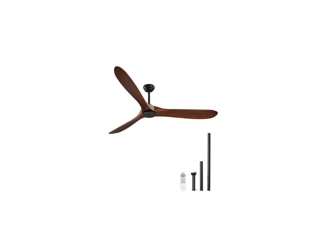 Stropní ventilátor VEVOR 72 palců bez světla, 6stupňové dálkové ovládání, 3 dřevěné lopatky, reverzibilní stejnosměrný motor, moderní nízkoprofilový zapuštěný venkovní ventilátor do ložnice, obývacího pokoje, na terasu, pro vnitřní i venkovní použití, ořech3 různé velikosti spouštěcích tyčí
