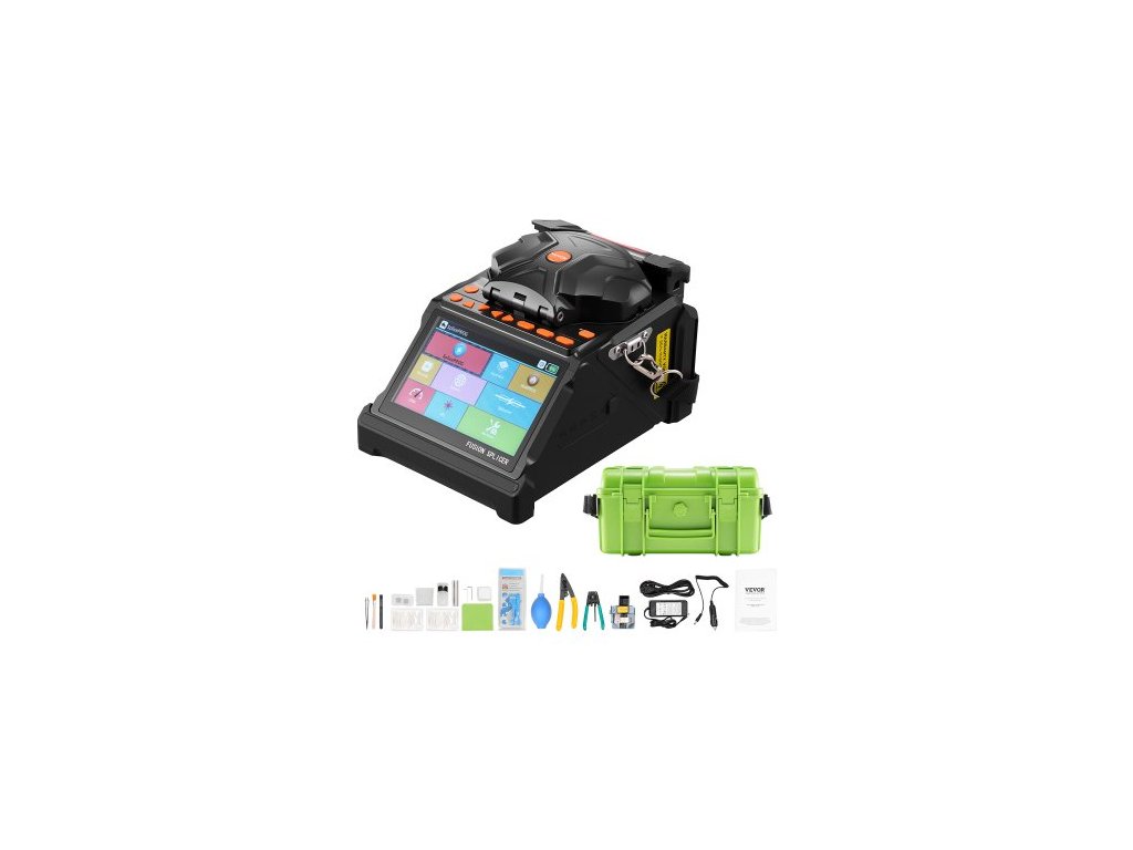 Svářečka optických vláken VEVOR, 6 motorů, zarovnání jádra a pláště, svářečka optických vláken s rychlým svařováním 6 s a ohřevem 13 s, 5" LCD displej, držák vláken 3 v 1, baterie 7800 mAh pro vlákna SM, MM, DS, NZDS