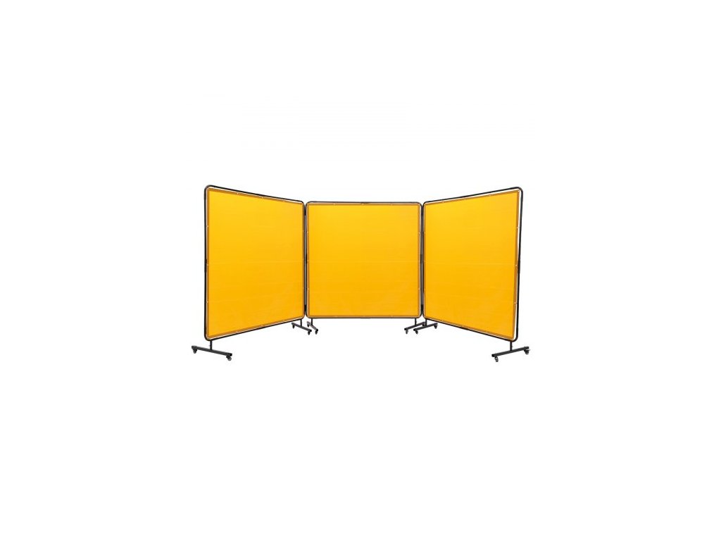 Svářečská zástěna VEVOR s rámem, 3dílná svářečská zástěna o rozměrech 6' x 6', nehořlavá vinylová ochranná svářečská zástěna na 12 otočných kolečkách (6 uzamykatelných), přenosná a profesionální pro dílnu, žlutáPrémiový nehořlavý materiál