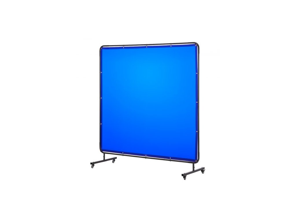 Svářečská zástěna VEVOR s rámem, svářečská zástěna 1,74 x 1,74 m, ochranná zástěna z nehořlavého vinylu s uzamykatelnými otočnými kolečky a 6stupňovou UV ochranou pro dílenské/průmyslové použití, modrá