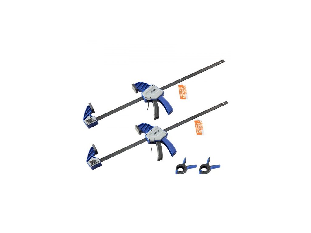 Svěrky VEVOR pro dřevoobrábění, balení 2 kusů, 60,96 cm jednoruční svěrka/rozpěrka, rychloupínací F-svěrka s nosností 154 kg, prémiový plast a uhlíková ocel, pro dřevoobrábění a kovobrábění, modrá + černáVysoce kvalitní materiály
