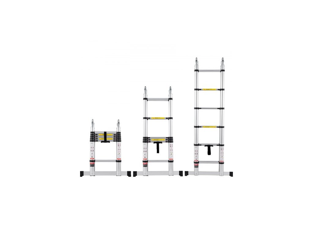 Teleskopický žebřík VEVOR, 12,5 stop dlouhý hliníkový výsuvný žebřík ve tvaru A, lehký, skládací žebřík s více tlačítky, nosnost 375 liber se stabilizační tyčí, víceúčelové žebříky pro obytné vozy a karavanyTeleskopický žebřík z hliníkové slitiny