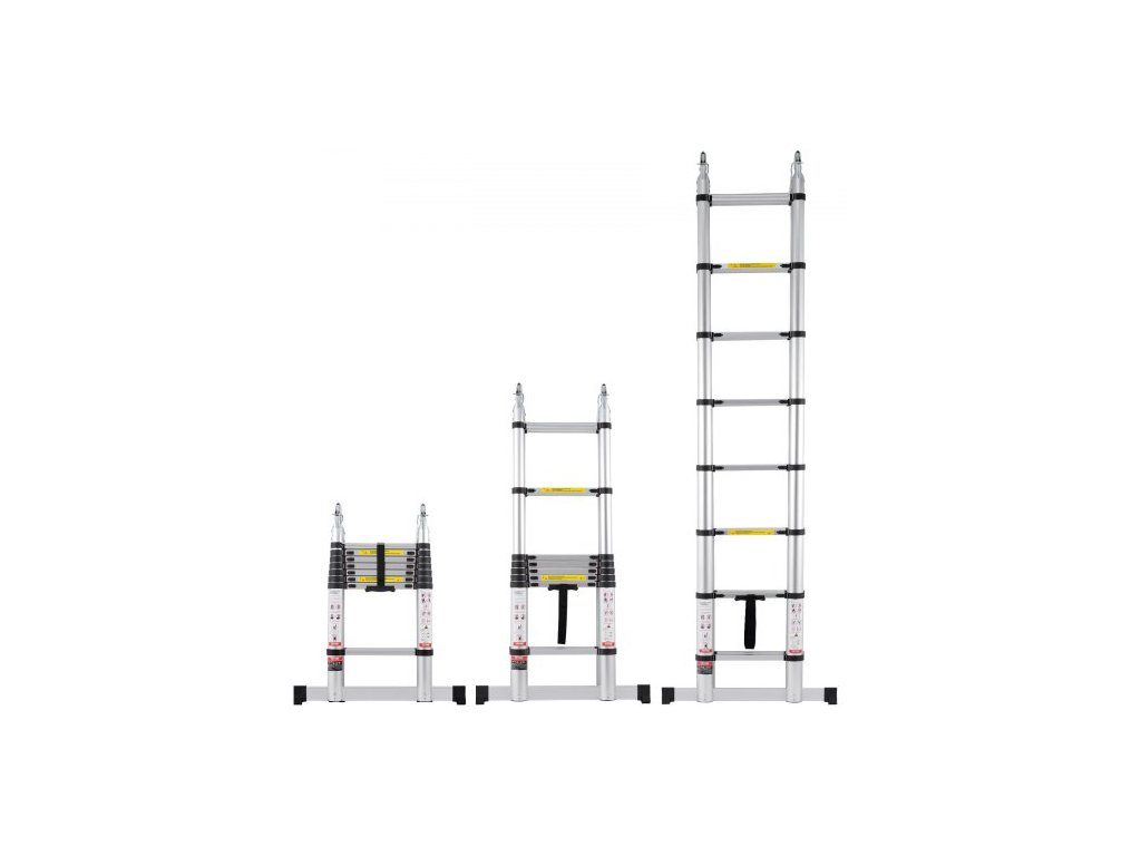 Teleskopický žebřík VEVOR, 16,5 stop (4,8 m), hliníkový výsuvný žebřík ve tvaru A, lehký, skládací žebřík s více tlačítky, nosnost 160 kg se stabilizační tyčí, víceúčelové žebříky pro obytné vozy a karavany.Teleskopický žebřík z hliníkové slitiny
