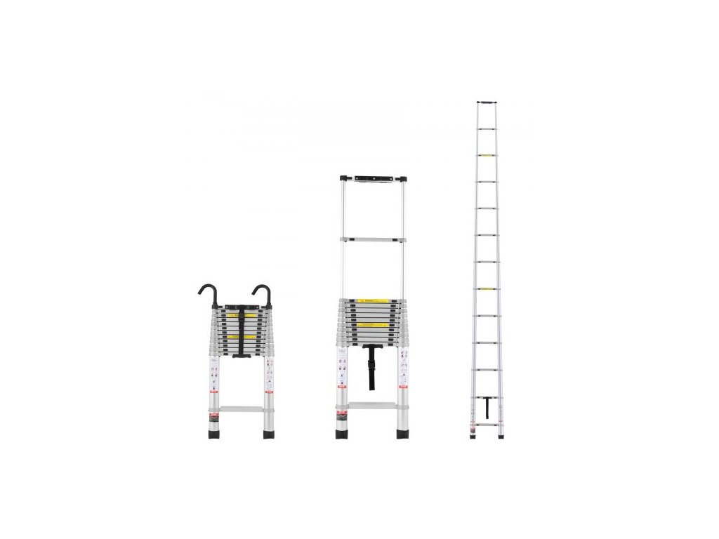Teleskopický žebřík VEVOR, 16,5 stop (5,2 m), hliníkový lehký výsuvný žebřík, skládací žebřík s více tlačítky, nosnost 200 kg (200 kg) s protiskluzovými nožičkami, přenosné kompaktní žebříky pro domácnost, karavan, podkrovíTeleskopický žebřík z hliníkové slitiny