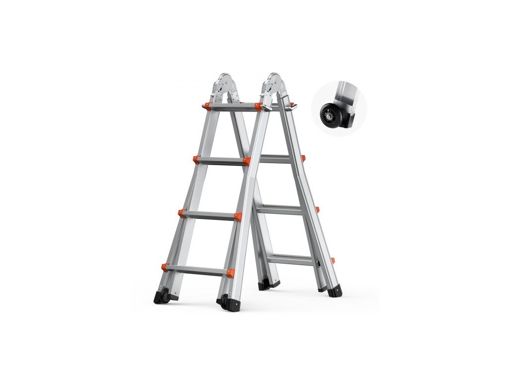Teleskopický žebřík VEVOR s rámem A, 13 stop dlouhý kompaktní hliníkový výsuvný žebřík, multifunkční přenosný skládací žebřík do obytného vozu, teleskopický žebřík pro domácí práce, schody do interiéru, exteriéru a střechy, nosnost 330 liberSilná nosnost