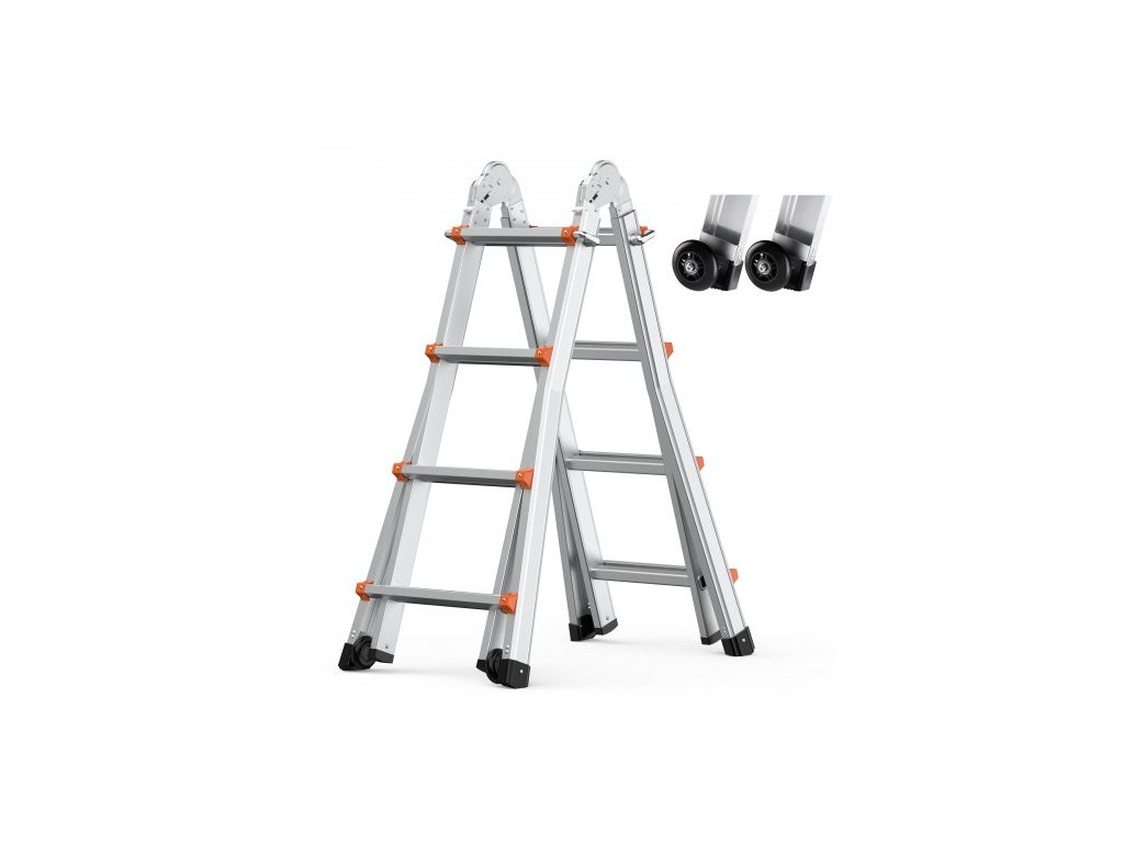 Teleskopický žebřík VEVOR s rámem A, kompaktní hliníkový výsuvný žebřík 15,5 stop, multifunkční přenosný skládací žebřík do obytného vozu, teleskopický žebřík pro domácí úkoly, vnitřní i venkovní střešní schody, nosnost 330 liberSilná nosnost