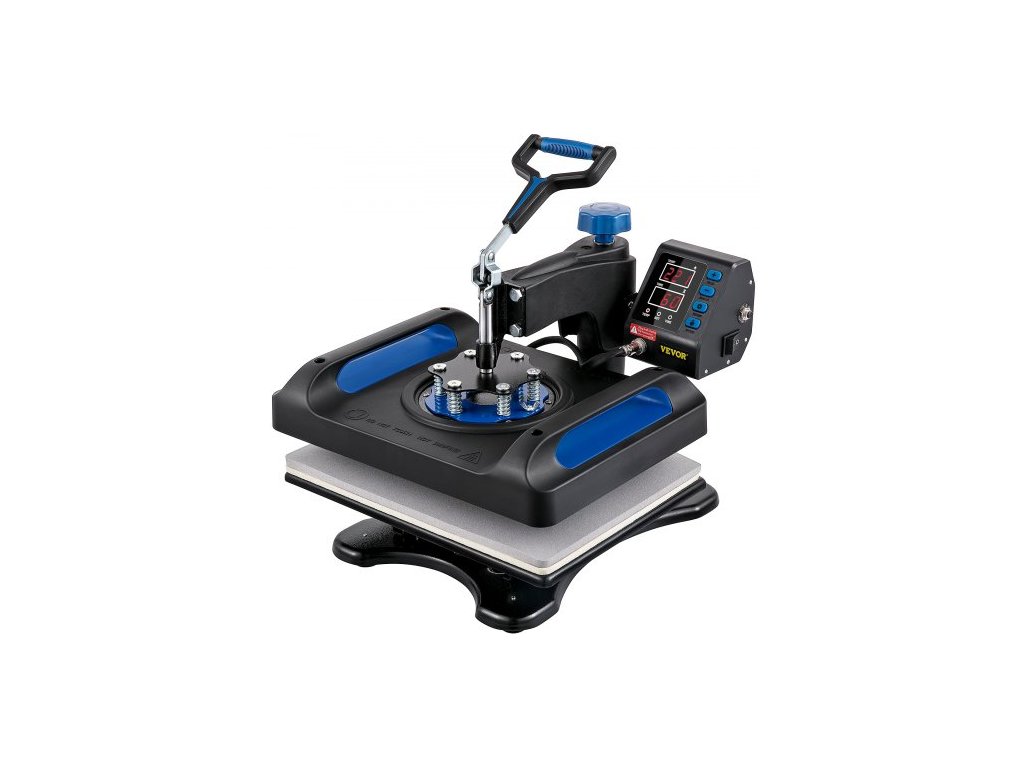 Tepelný lis VEVOR, 12 x 15 palců, rychlý ohřev, digitální sublimační tiskárna na trička s 360 výkyvy, plátěná taška, polštář, banner, modráSnadno čitelný digitální panel