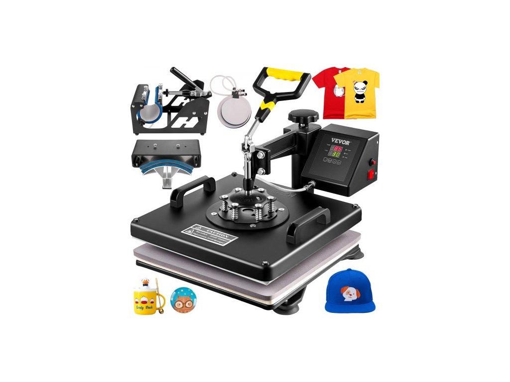 Termolis VEVOR, 15 x 15 palců, kombinovaná sublimační tiskárna 5 v 1 na trička s teflonovým povlakem, příslušenství na hrnky/klobouky/talíře součástí balení, certifikace ETL/FCC, černáDigitální praktický ovladač