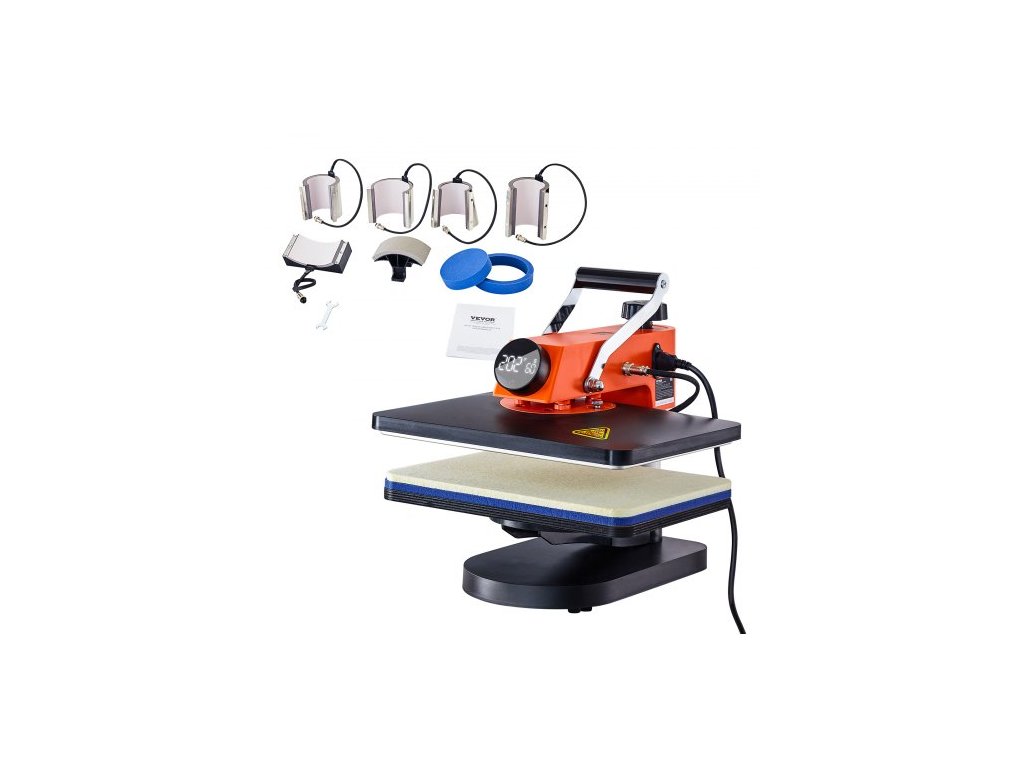 Termolis VEVOR - 8v1 sublimační termolis pro DIY trička/čepice/hrnky/projekty s přenosem tepla, multifunkční výklopný termolis 12x15 s rotací 360°, testováno dle norem UL