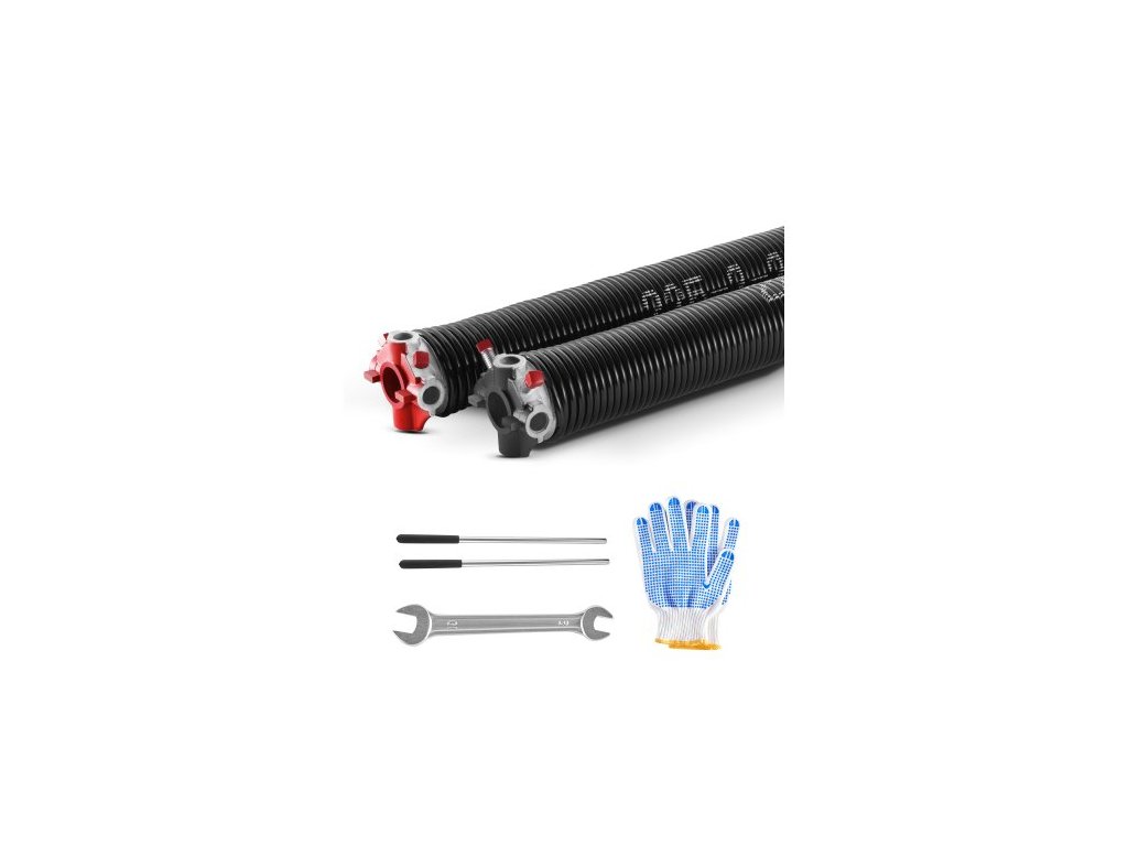 Torzní pružiny garážových vrat VEVOR, pár 0,225 x 2 x 24 palců, 16 000 cyklů, elektroforéza, černý povlak pro výměnu, pružiny garážových vrat s protiskluzovými navíjecími tyčemi, rukavice a montážní klíč
