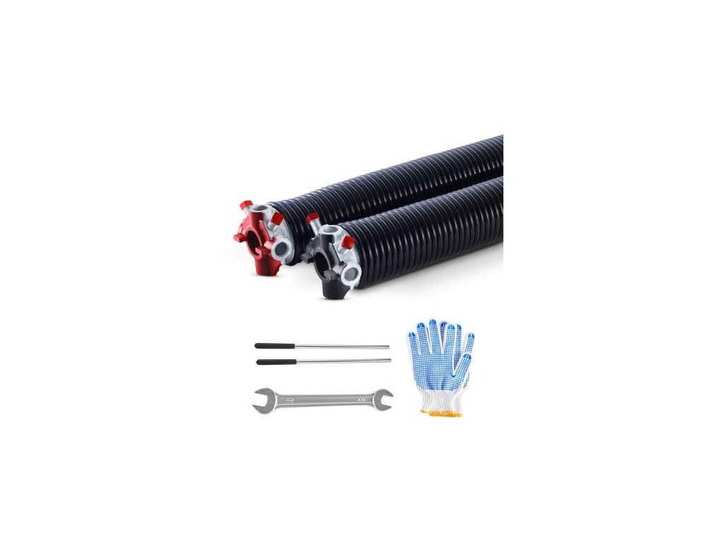 Torzní pružiny garážových vrat VEVOR, pár 0,250 x 2 x 35 palců, 16 000 cyklů, elektroforéza, černý povlak pro výměnu, pružiny garážových vrat s protiskluzovými navíjecími tyčemi, rukavice a montážní klíč