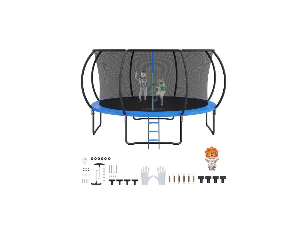 Trampolína VEVOR 14 stop, trampolína o hmotnosti 450 liber s ochrannou sítí, žebříkem a zakřivenou tyčí, odolná trampolína se skákací plochou a pružinovým krytem, venkovní rekreační trampolíny pro děti a dospěléZábavní trampolína
