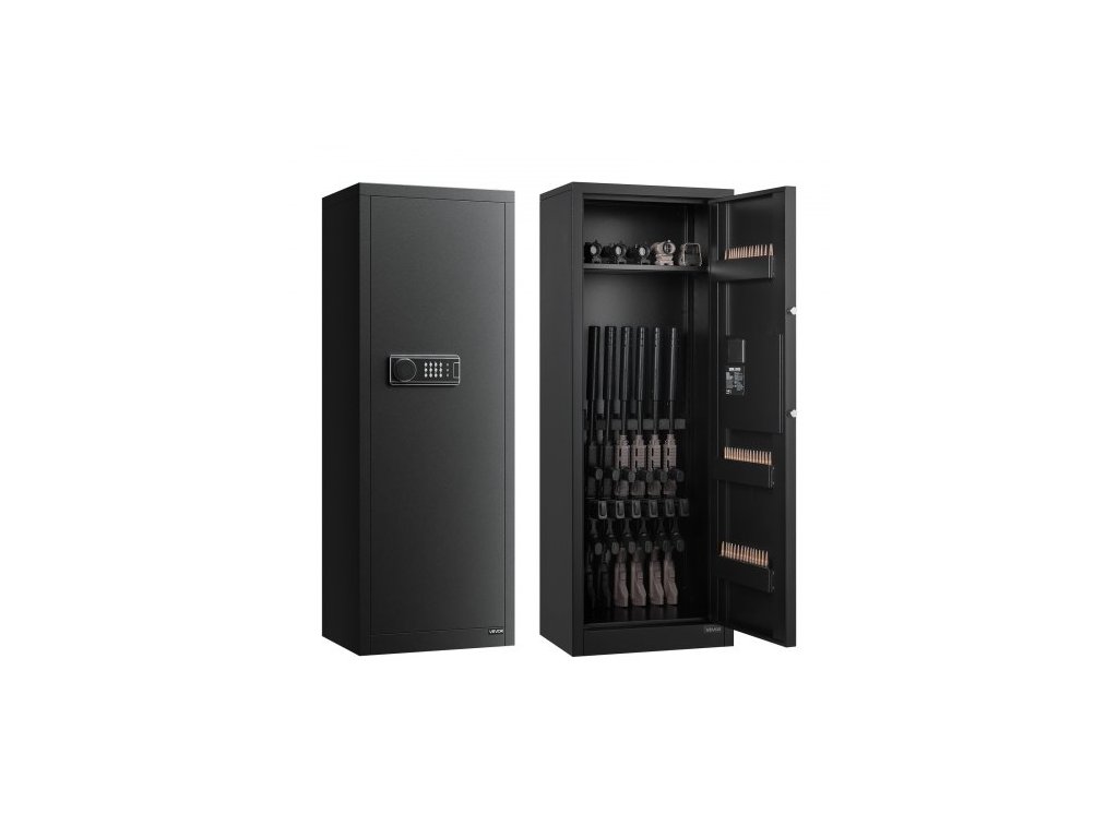 Trezor na zbraně VEVOR 6-8, skříň na dlouhé zbraně pro pušky a pistole, rychlý přístup k trezoru na zbraně se 3 sloty na munici a 2 nastavitelnými stojany, velká digitální skříň s klíčovým a heslem na zámkuVelká kapacita