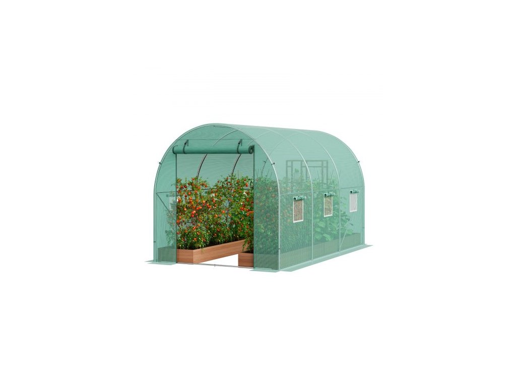 Tunelový skleník VEVOR, 9,6x6,4x6,2 ft, kruhový skleníkový tunel, skleník na rostliny s pozinkovaným ocelovým rámem, zeleným PE krytem, rolovacími dveřmi na zip a 6 okny pro venkovní použitíVelký skleník