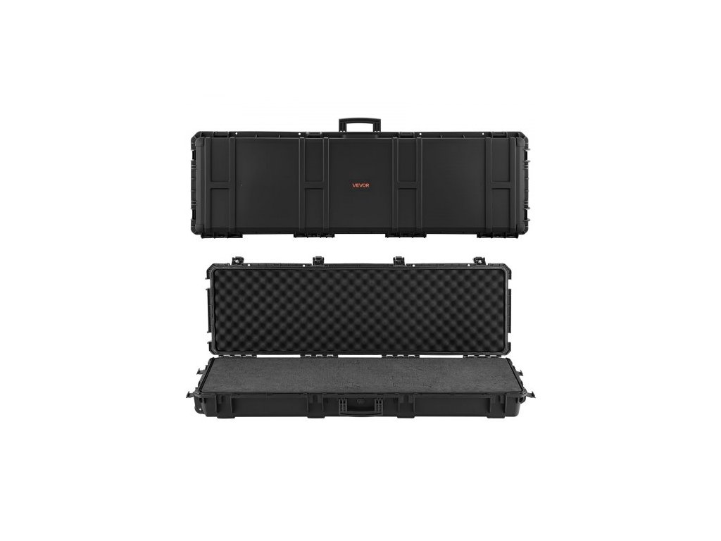 Tvrdé pouzdro na pušku VEVOR, uzamykatelné pouzdro na pušku s odnímatelnou pěnou XPE, úložný prostor pro zbraň 1270 mm s kolečky, vodotěsné a prachotěsné pouzdro na pistole s krytím IP67 pro pušky, brokovnice, airsoftové zbraně, černéPřenosné rukojeti