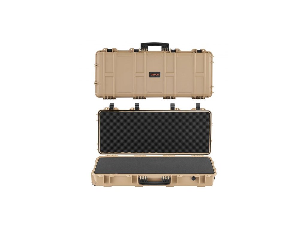Tvrdé pouzdro na pušku VEVOR, uzamykatelné pouzdro na pušku se 4 vrstvami předřezaných pěn, úložný prostor pro zbraň 914 mm s kolečky, vodotěsné a prachotěsné pouzdro na pistole s certifikací IP67 pro pušky, brokovnice, airsoftové zbraně, khakiPřenosné rukojeti