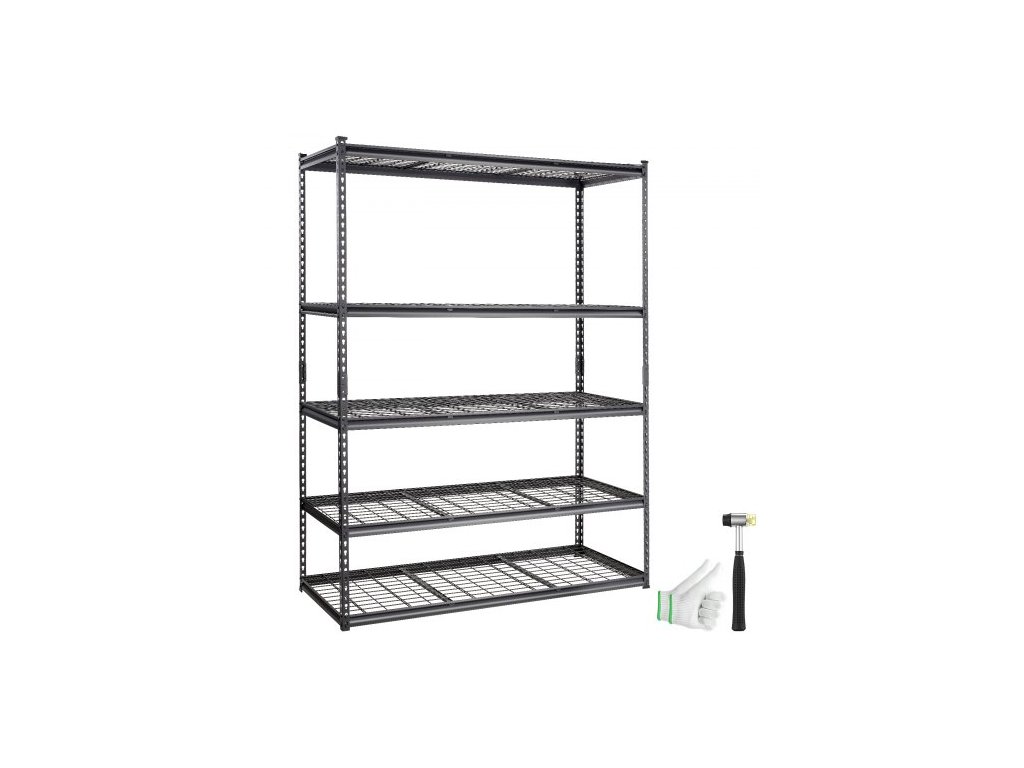 Úložný regál VEVOR, 5patrový nastavitelný, nosnost 900 kg, odolný garážový regál, kovový organizér, drátěný regál, černý, délka 152 cm x šířka 61 cm x výška 218 cm, pro kuchyň, spíž, sklep, koupelnu, prádelnuSilné zatížení a úhledné skladování