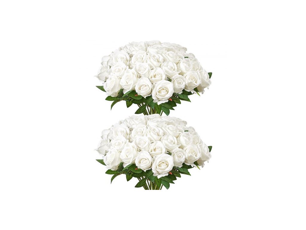 Umělé květiny VEVOR, 60 ks skutečně vypadajících bílých pěnových umělých růží, velké množství, bílé umělé květinové dekorace na rozlučku se stonky pro DIY svatební kytice, dekorace do interiéru, aranžmá, dekorace na párty stolyIdeální květinová alternativa