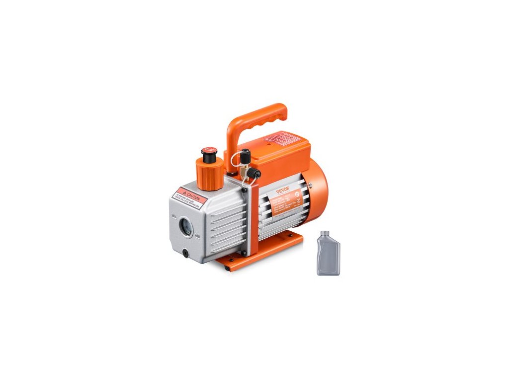 Vakuové čerpadlo VEVOR, 217 l/min (3,5 CFM), jednostupňové rotační lamelové vakuové čerpadlo pro HVAC, pro systémy R134a R22 R410a, sada vakuového čerpadla pro autoklimatizaci s olejovou lahví, pro údržbu automobilových klimatizací a odplyňování pryskyřiceZvyšte svou efektivitu