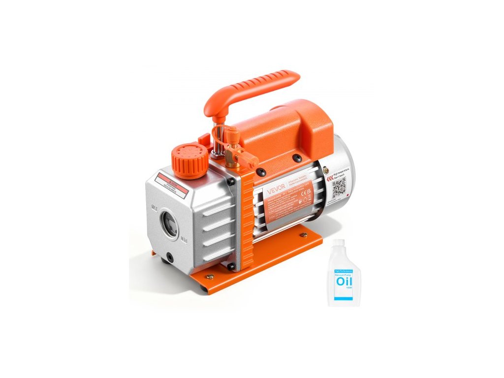 Vakuové čerpadlo VEVOR, 3,5 CFM 99 l/min, jednostupňové rotační lamelové AC vakuové čerpadlo pro HVAC, pro systémy R134a R22 R410a, 4pólový motor, pro údržbu automobilových klimatizací, odplyňování pryskyřice, včetně oleje