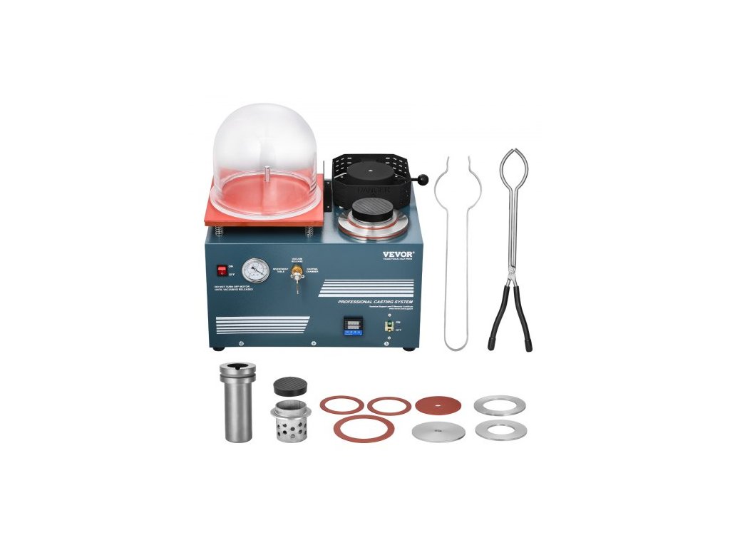Vakuový investiční licí stroj VEVOR s tavicí pecí, praktickým portem pro vstřikování oleje, přesným manometrem, všestranný stroj pro odlévání šperků a tavení šrotu, stříbra, zlata a mědi.Funkce 3 v 1