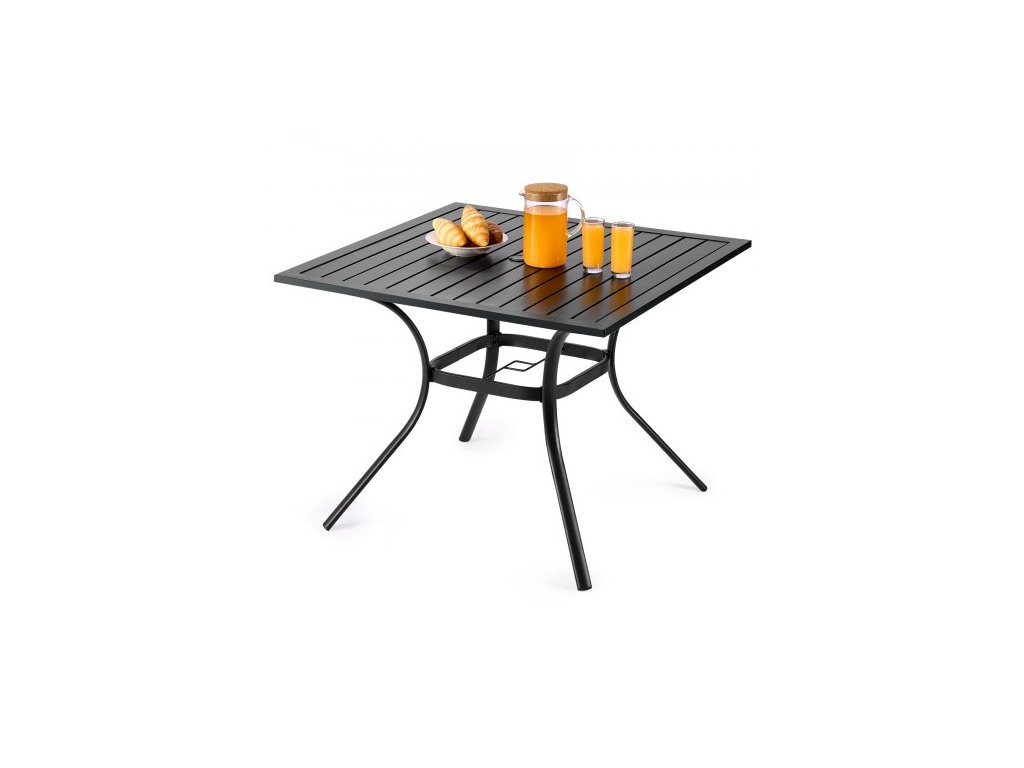 Venkovní jídelní stůl VEVOR na terasu, 94 cm čtvercový kovový ocelový lamelový zahradní bistro stolek, s 38mm otvorem pro slunečník, venkovní nábytek do každého počasí, velký, na zahradní verandu, černý