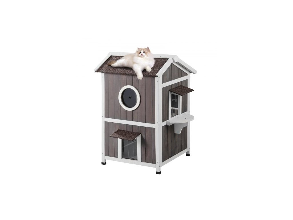 Venkovní kočičí domek VEVOR odolný proti povětrnostním vlivům, přístřešek pro divoké kočky s více kočkami, dvoupatrový velký venkovní dřevěný kočičí domek s dveřmi, PVC klapkami, průhledným oknem, 23"D x 26"Š x 36"VBezpečné použití