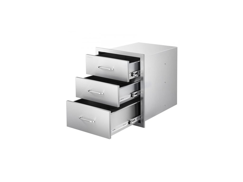 Venkovní kuchyňské zásuvky VEVOR 46,4 cm Š x 58,4 cm H x 58,4 cm V, nerezové zásuvky na gril s trojitým přístupem a úchyty, zásuvka na grilovací ostrůvek pro venkovní kuchyně nebo grilovací ostrůvek na teraseZaoblené hrany