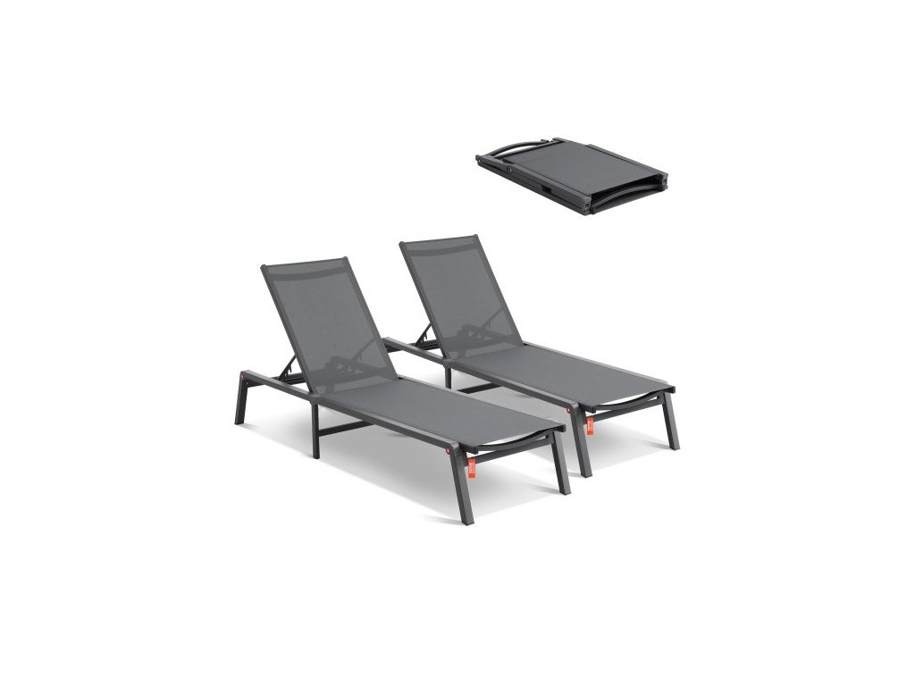 Venkovní lehátka VEVOR, hliníková zahradní lehátka s nastavitelnými 5 polohami, skládací bazénová lehátka, polohovací a plochá opalovací křesla na terasu, pláž, bazén, tmavě šedá, 2 ks