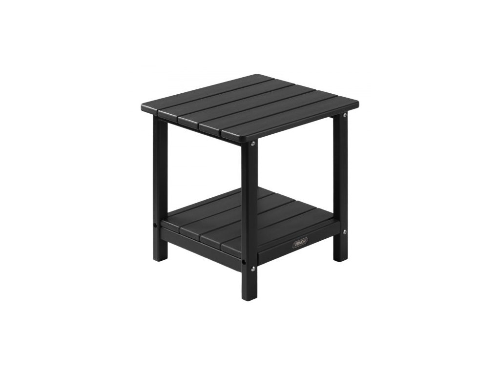 Venkovní odkládací stolek VEVOR, 450Š x 380H x 440V mm, dvouvrstvý venkovní odkládací stolek z HDPE pro snadnou údržbu, odolává drsnému počasí, vhodný na terasu, k bazénu, na pláž, verandu, do interiéru, na zahradu, černý