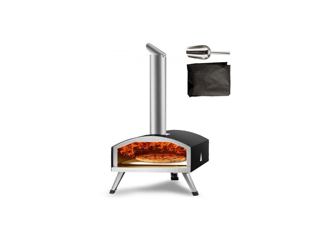 Venkovní pec na pizzu VEVOR, 12palcová, na dřevěné pelety a dřevěné uhlí, přenosná venkovní pec na pizzu z nerezové oceli s kamenem na pizzu, vodotěsný kryt, lopata, hořák na dřevo pro kempování na zahradě
