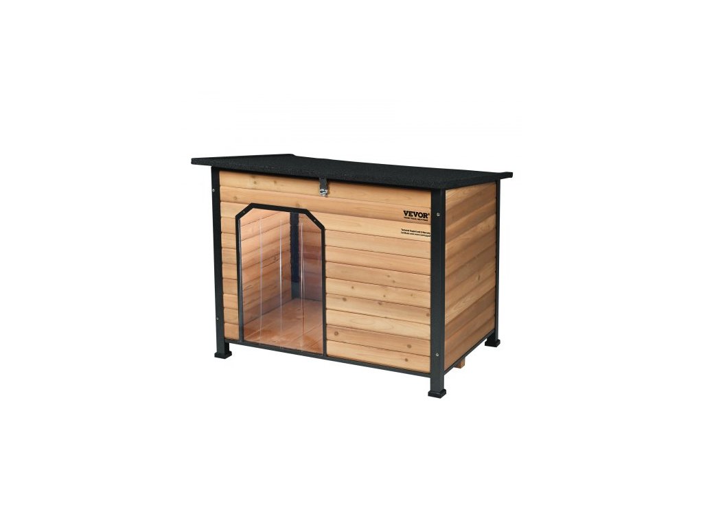 Venkovní psí bouda VEVOR, vodotěsná izolovaná psí bouda s vyvýšenou podlahou, venkovní dřevěná psí bouda s kovovou konstrukcí odolnou proti kousání, otevřená střecha, pro střední až velké psyPrémiová konstrukce